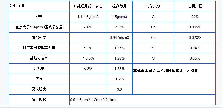 無煙煤濾料在水處理中起的作用好壞,直接影響濾過的水質,所以在選擇無煙煤濾料的時候,質量必須符合國家相關標準。下為建設部水處理濾料監督檢測中心頒布的CJ/T43 -2005《水處理用濾料》中無煙煤濾料的相關標準。