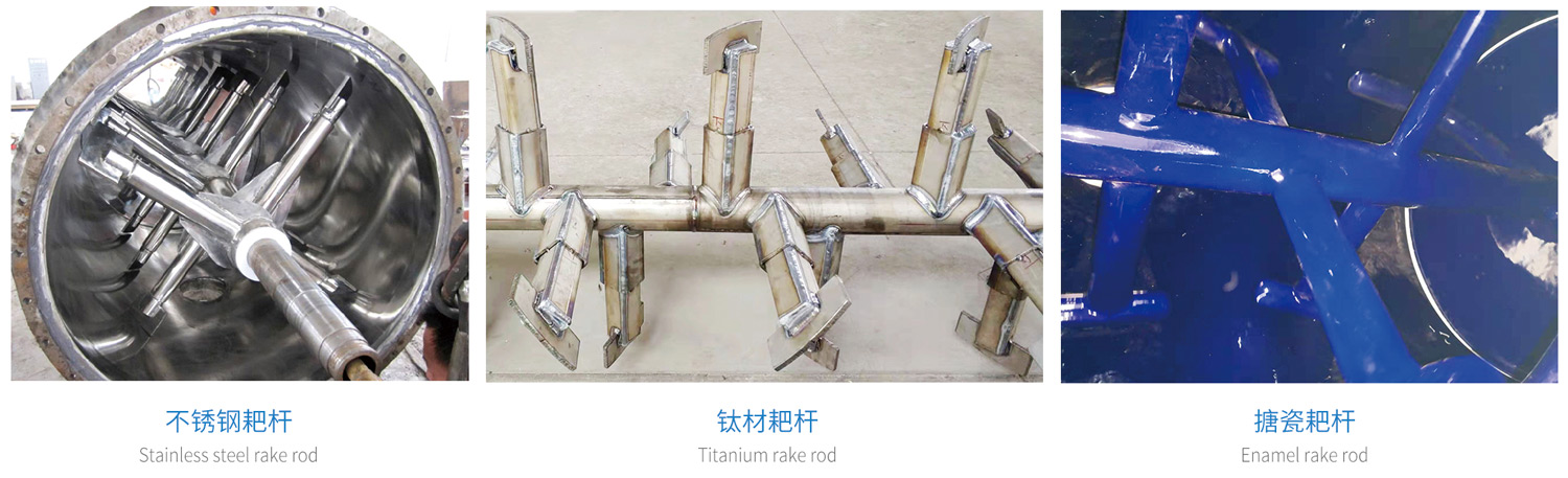 本機是一種新穎臥式間歇式真空干燥設備,濕物料經傳導蒸發,帶有刮板攪拌器不斷清除熱面上的物料,并在容器內推移形成循環流,水份蒸發后由真空泵抽出。