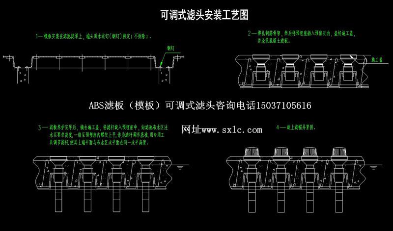 水廠濾池氣水反沖洗濾池常用的濾板有預(yù)制濾板和現(xiàn)澆整體濾板兩種:濾頭分為固定式和可調(diào)式兩種.固定式適應(yīng)于預(yù)制濾板:可調(diào)式長(zhǎng)柄濾頭特別適應(yīng)于現(xiàn)澆濾板.也適應(yīng)于預(yù)制濾板.QSK-ll型可調(diào)式長(zhǎng)柄濾頭原料采用高強(qiáng)度ABS顆粒樹(shù)脂(簡(jiǎn)稱ABS工程塑料)經(jīng)高溫?zé)崛苡删苣ゾ叱尚汀?烧{(diào)式濾頭主要用:濾帽、濾桿、預(yù)埋座組成,濾桿上設(shè)有調(diào)節(jié)螺紋,可供上下調(diào)節(jié);且設(shè)有調(diào)節(jié)瓣與預(yù)埋座內(nèi)調(diào)節(jié)瓣防脫條結(jié)合,可控制濾桿調(diào)節(jié)精度,同時(shí)固定其位置。